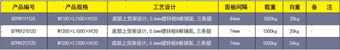 產(chǎn)品名稱:輕型B型鍍鋅托盤 產(chǎn)品編號(hào):QTPB1210120 產(chǎn)品規(guī)格:W1200×L1000×H120 托盤主孔:100mm 托盤側(cè)孔:80 mm 產(chǎn)品自重:20kg 產(chǎn)品靜載:800kg 產(chǎn)品動(dòng)載:600kg 上貨架載:300kg 產(chǎn)品配置:采用寶鋼鍍鋅板軋機(jī)成0.6*10*85多筋骨面板 10根,以間隔84mm 和6根板做腿+12個(gè)立撐 組成。 產(chǎn)品用途:廣泛用于酒水、食品、化工、電子等大量物品 倉儲(chǔ)與周轉(zhuǎn)。本結(jié)構(gòu)為上貨架設(shè)計(jì)。